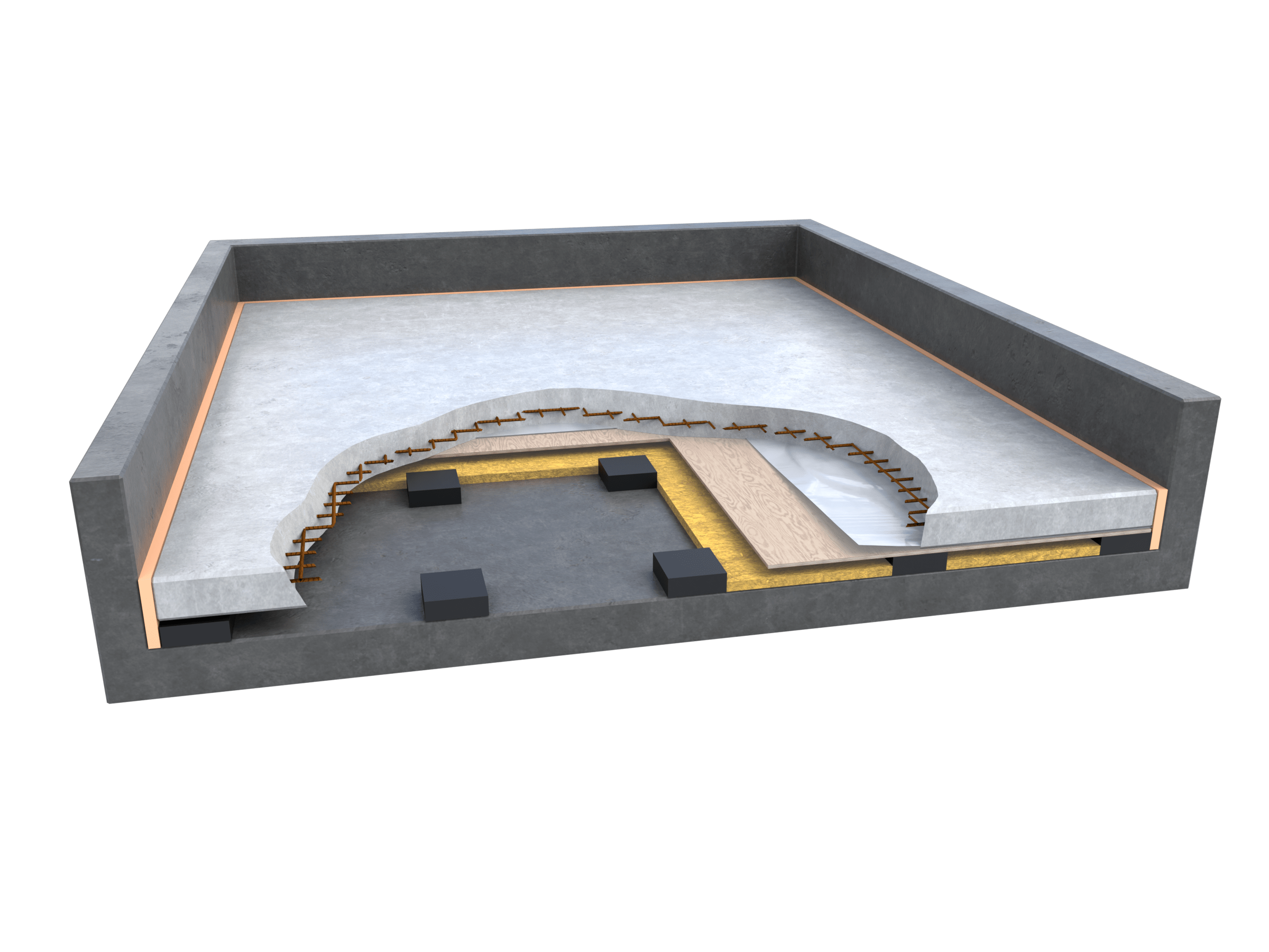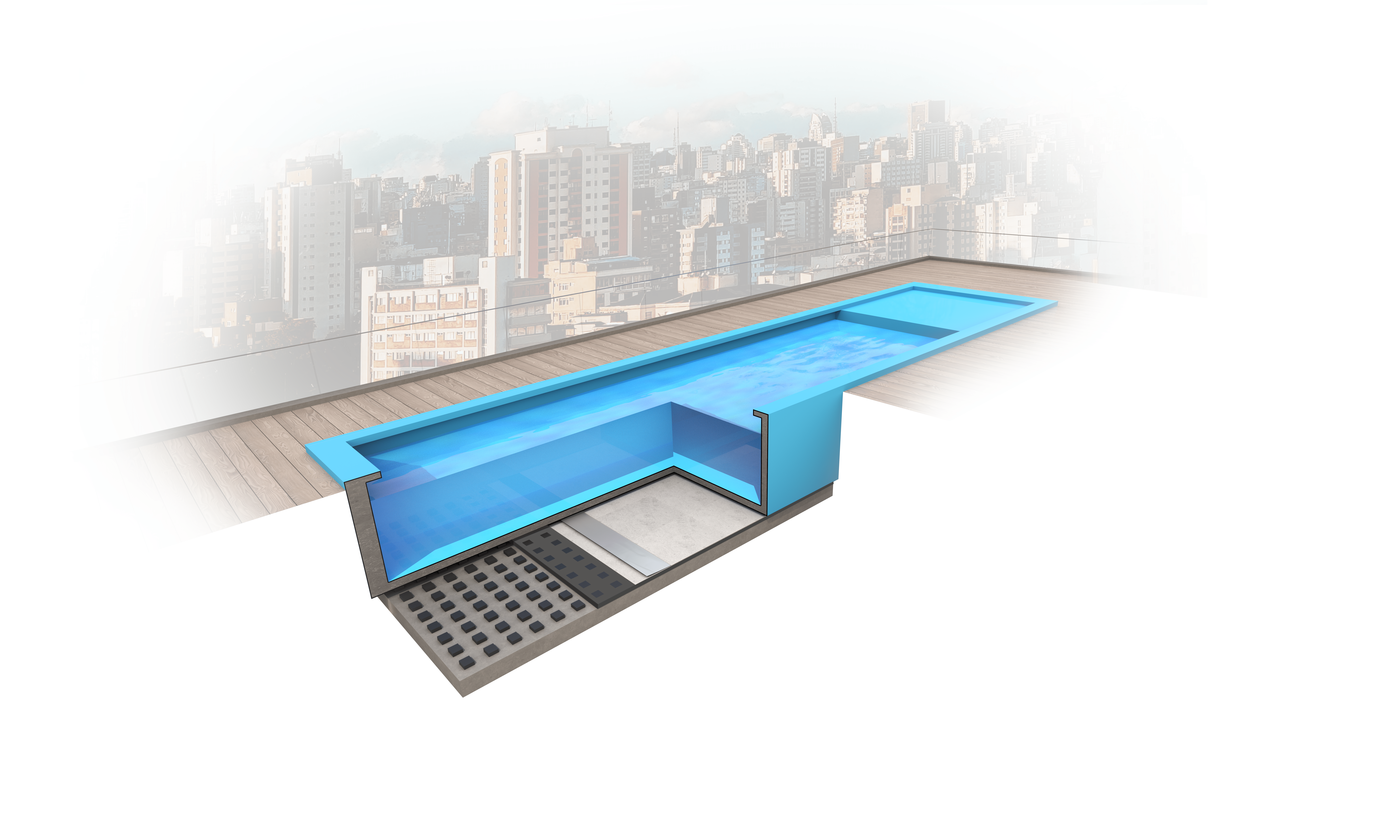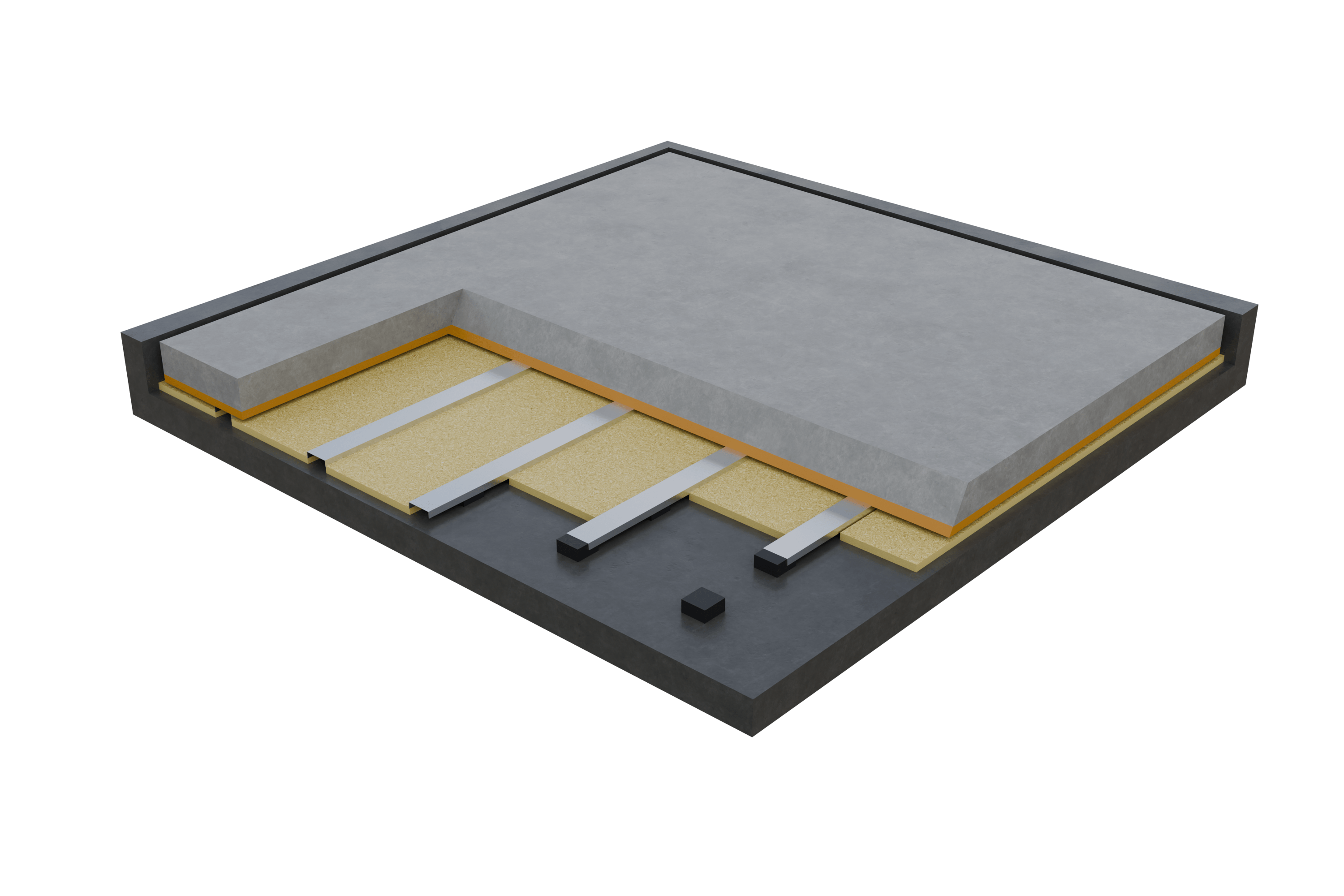 Exemple d’application. D’autres cas d’usage sont possibles, tels que les sols de salles de sport, les héliports, les bars en rooftop, et bien plus encore. Une combinaison de NOVODAMP® et de NOVOFILL peut également être utilisée.